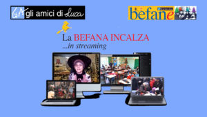 Quest’anno per la prima volta dal 1998 La Befana non sarà sotto le Due Torri e Giancarlo Saveri con il suo calesse trainato dalla somarina Bianchina non potrà portare in giro la Befana per il centro della città; anche Nicola Fusaro, celebre caldarrostaio di via Rizzoli, non potrà distribuire per noi le sue caldarroste. Ma Paola Mandrioli, attrice di Fantateatro che ha preso ormai da molti anni sulle spalle l’eredità di Carla Astolfi, si è già attivata prima delle feste con il suo bando per le scuole dal titolo “La Befana incalza” (da un’idea del nostro testimonial Alessandro Bergonzoni) con cui abbiamo invitato i bambini a chiedere che cosa avrebbero voluto trovare nella calza e di esprimerlo attraversi scritti e disegni. Con questa iniziativa abbiamo inteso essere vicino al mondo della scuola e ai bambini, operando in sintonia con il corpo insegnanti e facendo sentire viva una tradizione che altrimenti rischierebbe di scomparire. In particolar modo con la scuola Don Milani di Bologna e Gianni Rodari di Bentivoglio abbiamo realizzato e registrato incontri online dalla Casa della Befana facendoli diventare trasmissioni di approfondimento che assieme agli spot andranno in onda su TRc e E’tv .