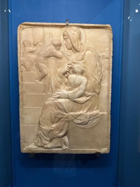 Quante storie possono entrare in una valigia? Magari una valigia un po’ vecchiotta, con qualche graffio e una fibbia che non chiude più bene. Dipende da quanta fantasia abbiamo, da quanta creatività ci portiamo dentro… e soprattutto da quanta voglia abbiamo di ascoltare e osservare le storie che ci vengono raccontate. Oggi vogliamo condividere con voi una storia speciale: quella del piccolo Michelangelo, quando ancora non era il grande artista che tutti conosciamo, ma solo un bambino che muoveva i primi passi nel mondo. Mettetevi comodi, drizzate le orecchie e spalancate gli occhi: la sua storia è bellissima. Quello che vedrete in mostra vi sorprenderà — sono tantissime le opere esposte, tutte di straordinaria bellezza. E poi, se alzate il naso verso il soffitto, vi accorgerete che anche le pareti raccontano: storie dipinte, intrecciate tra loro, che vivono qui, a Palazzo Fava.